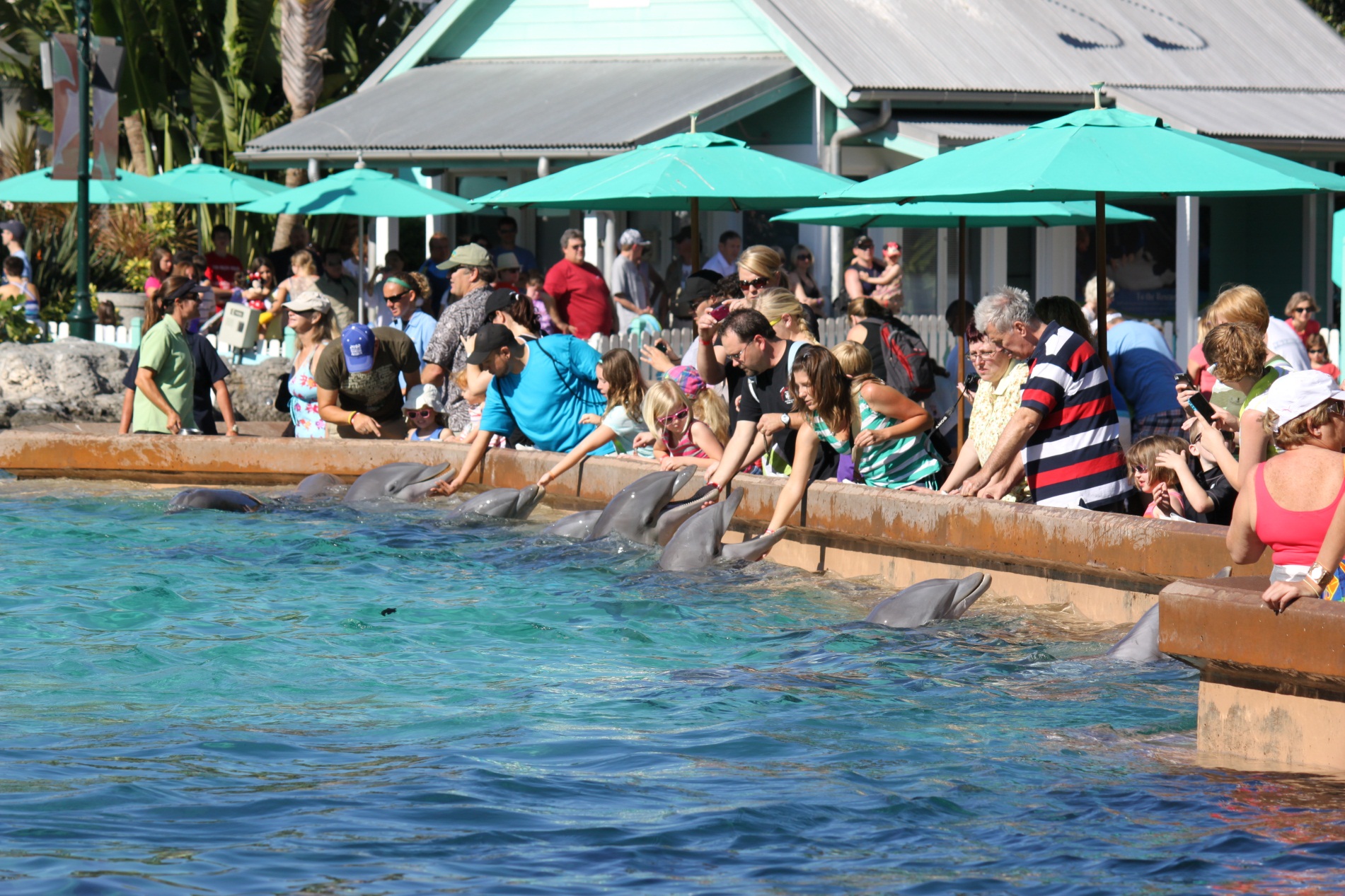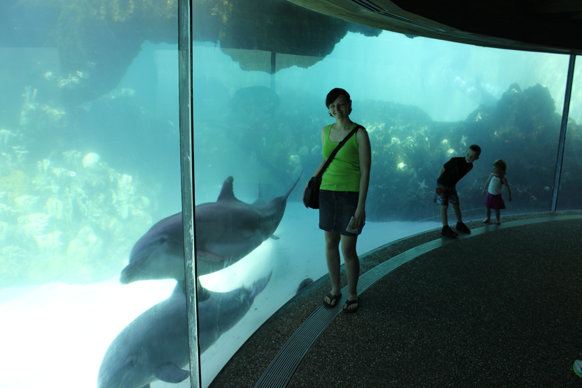 Leider hat Sea World das Füttern der Delfine geändert. Als wir das erste Mal dort waren, konnte man sich die Fische kaufen und wurde dann zum Füttern gelassen. Inzwischen gibt es ein paar festgelegte Zeiten zu denen das Füttern stattfindet. Wir haben es mehrmals versucht und auch genauso oft abgebrochen. Als dieses Bild entstanden ist, waren wir zwar relativ weit vorne in der Warteschlange, allerdings waren es auch noch fast 40 Minuten bis zur Fütterung. Und leider gibt es an dieser Stelle keinen Schutz vor der Sonne. So brütet man die ganze Zeit bei ca. 35 Grad vor sich hin. Das war es uns dann doch nicht wert. Das war aber wirklich der einzige negative Punkt in Sea World. Sonst war der Tag wirklich sehr schön und abwechslungsreich.