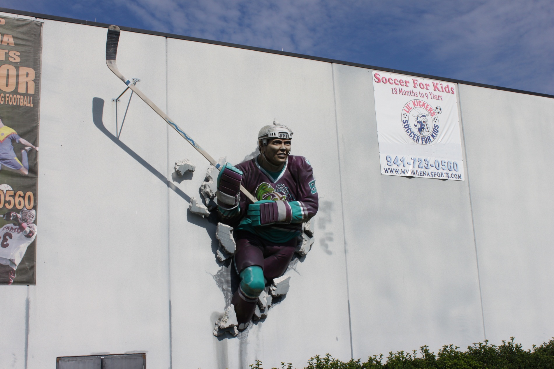 Auf dem Weg nach Anna Marie Island haben wir in Ellenton diesen überdimensionalen Eishockeyspieler entdeckt