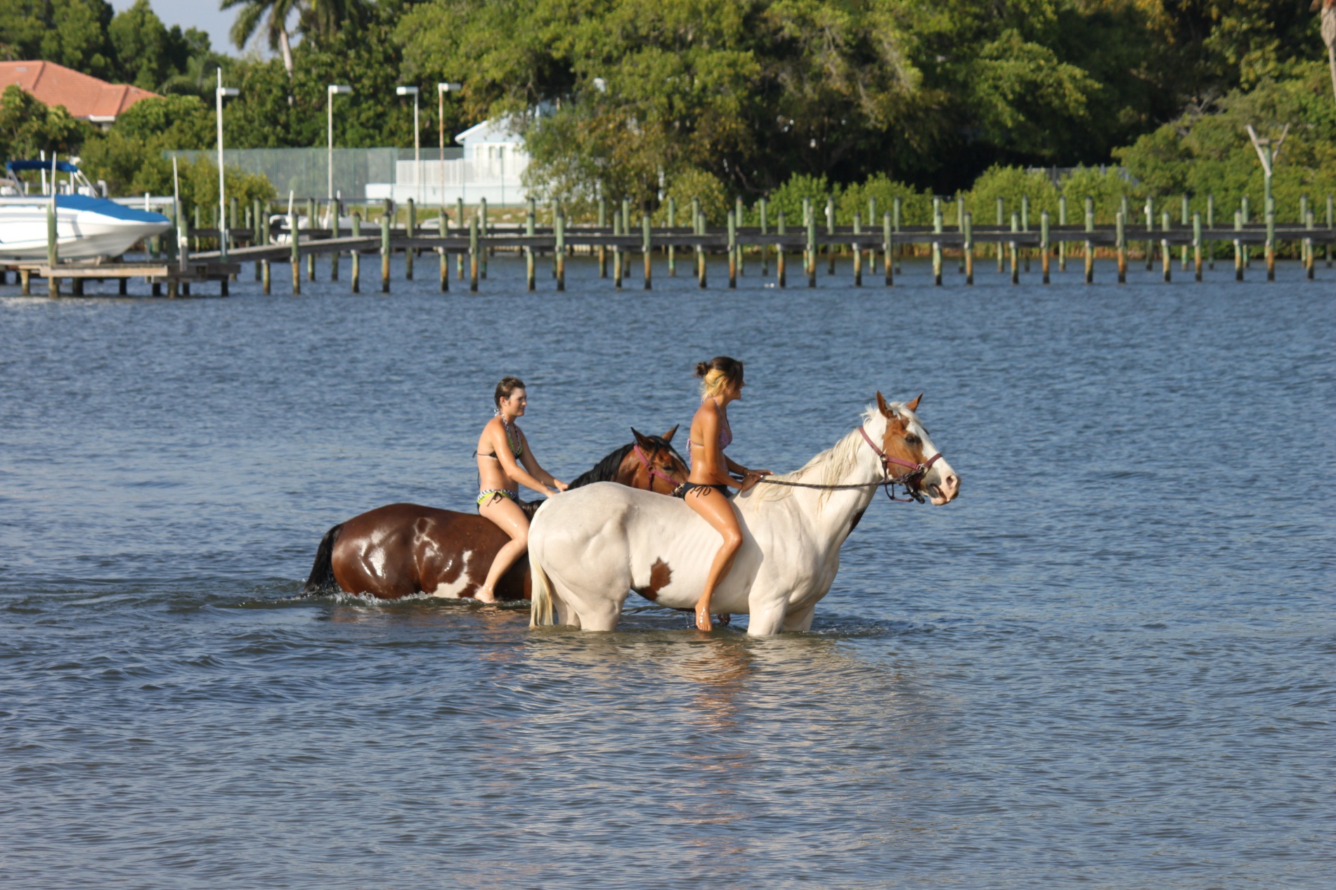 Auf Anna Maria Island haben wir mal spontan in die Bremse getreten um diese Szene zu fotografieren. Die zwei waren komplett mit Ihren Pferden schwimmen gegangen.