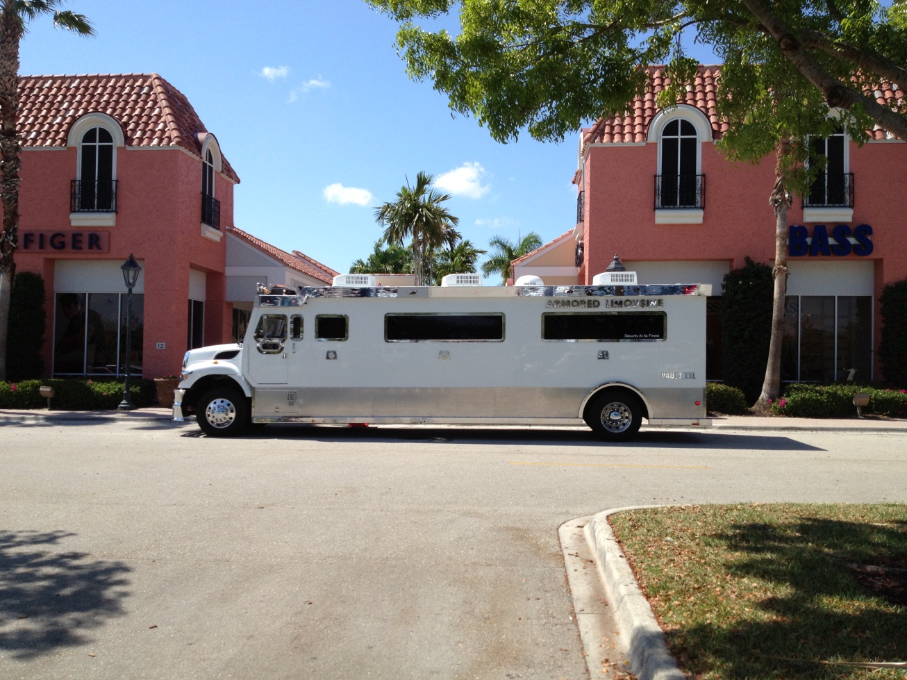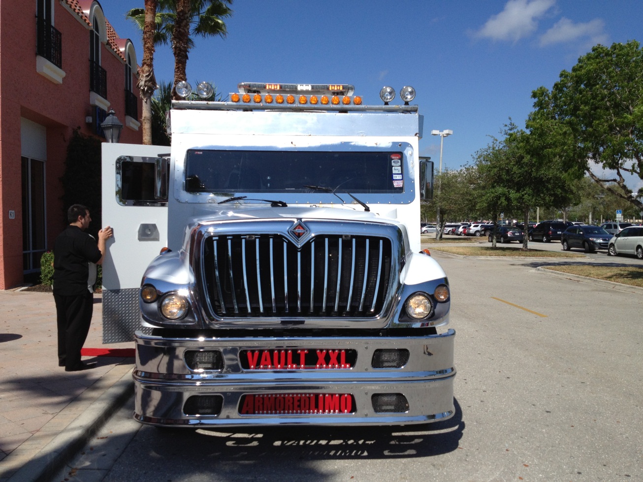 Wir dachten: wow..was werden denn da für Geldmengen transportiert. Aber zu unserer Überraschung handelte es sich um eine gepanzerte Limousine, die man wohl mieten kann. Hier wurden ein paar Leute ins Outlet Center gefahren