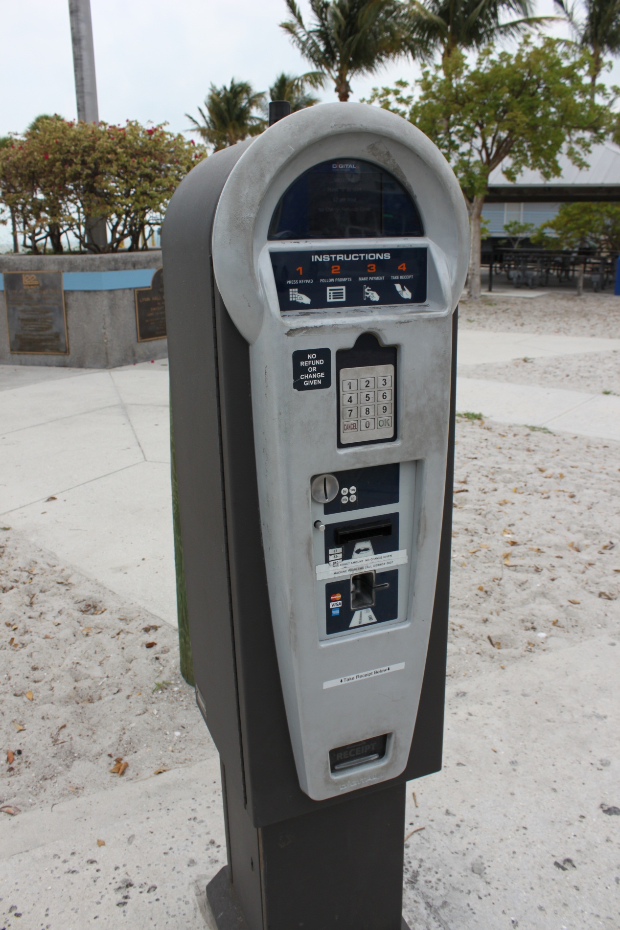 Man kann hier wirklich so ziemlich alles mit Kreditkarte bezahlen. Hier am Beispiel des Parkscheinautomaten. Aber es gibt auch Kreditkartenzahlung am Getränkeautomat für $1.25