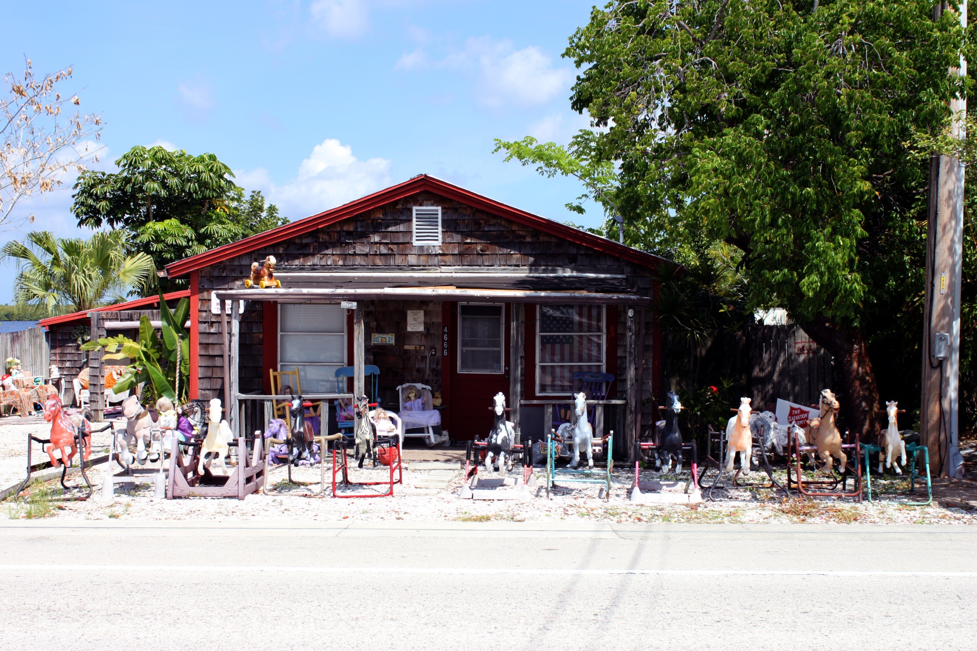 Auf dem Weg nach Pine Island fährt man in gemütlichem US Tempo die Straße entlang und kommt dann plötzlich durch so eine vollkommen verrückte Straße, mit solchen Häusern.