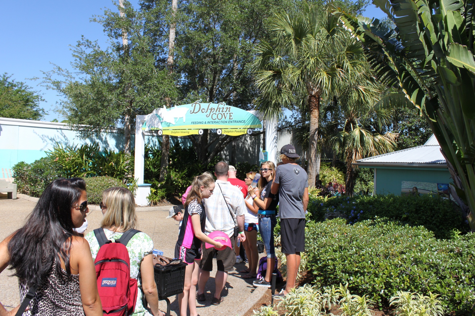 Leider hat Sea World das Füttern der Delfine geändert. Als wir das erste Mal dort waren, konnte man sich die Fische kaufen und wurde dann zum Füttern gelassen. Inzwischen gibt es ein paar festgelegte Zeiten zu denen das Füttern stattfindet. Wir haben es mehrmals versucht und auch genauso oft abgebrochen. Als dieses Bild entstanden ist, waren wir zwar relativ weit vorne in der Warteschlange, allerdings waren es auch noch fast 40 Minuten bis zur Fütterung. Und leider gibt es an dieser Stelle keinen Schutz vor der Sonne. So brütet man die ganze Zeit bei ca. 35 Grad vor sich hin. Das war es uns dann doch nicht wert. Das war aber wirklich der einzige negative Punkt in Sea World. Sonst war der Tag wirklich sehr schön und abwechslungsreich.